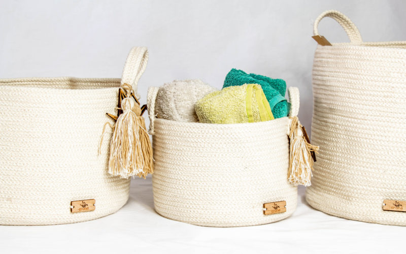 De estos pequeños descubrimientos decorativos están las canastas hechas con cordón de algodón, el cual es un material versátil, amigable con el medio ambiente con el que se pueden elaborar desde accesorios, canastas, elementos decorativos hasta manualidades y más.